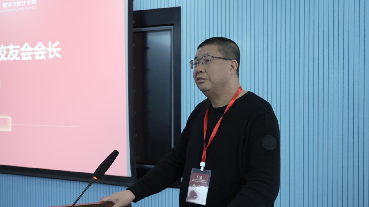 李振键致欢迎辞,宣讲了学校第十六次党代会精神,介绍了学校近年来在人才培养、科技创新、师资队伍等方面取得的标志性进展,回顾了学院发展历程。他强调,校友是学院的闪亮名片,也是学科实力的生动注脚。希望学院校友会打造温暖的“校友之家”和坚实的“互助平台”,紧密联络校友、织密校友网络,促进跨行业、跨届别的交流合作,推动校友与学院发展“双向赋能”,让学校红色基因和数学文化代代相传。