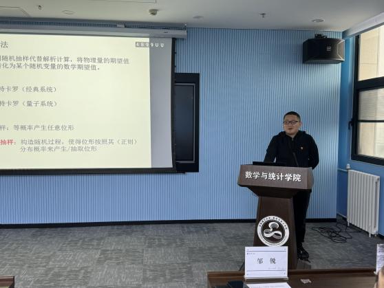 物理学院计算物理系刘录、数学与统计学院数学系党支部书记陈露分别以《蒙特卡罗方法研究量子多体系统》《Reconstruction by single passive observation》为题,先后作学术报告。两位教师立足专业领域,结合学科建设、人才培养、科研创新等工作实际,分享学术研究成果与育人实践经验,为两学院教师深化交流合作、推动学科交叉融合、提升基层党建工作质量提供了新思路、新方向。
