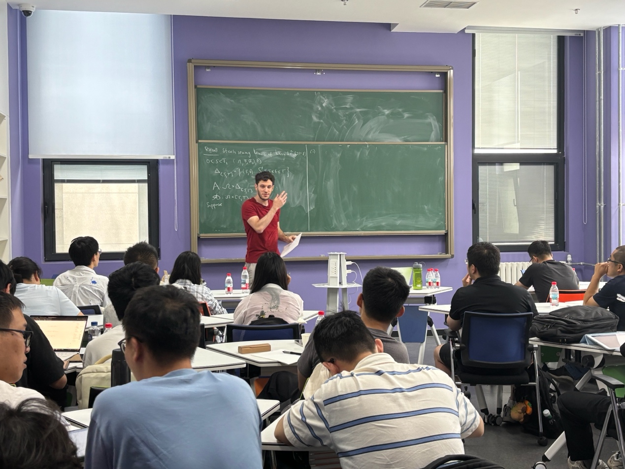 会议邀请了德国魏尔斯特拉斯研究所博士Butkovsky讲授了题为《Stochastic sewing with applications》的迷你课程。Butkovsky分两个阶段系统介绍了随机缝合引理(Stochastic Sewing Lemma)的核心理论,详细阐述了该工具在正则化噪声(Regularization by noise)、SDE数值算法收敛性以及慢快系统(Slow-fast systems)研究中的重...